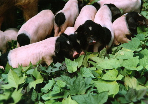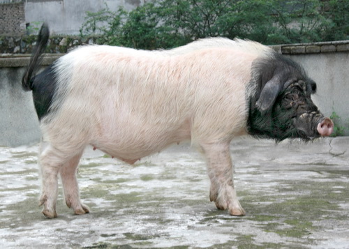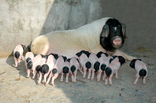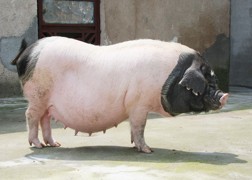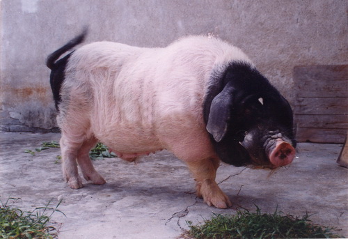 ⑶ 外形:成年公、母猪体长分别为145cm和140cm。体质结实,背腰较平直,有效奶头14个以上。